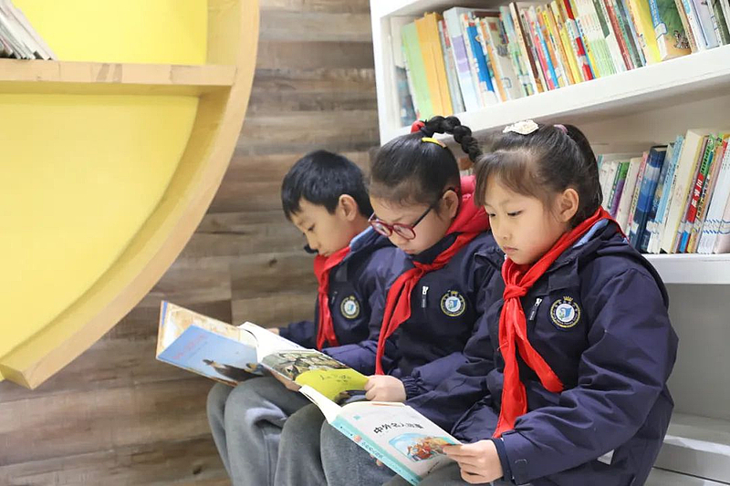 一到课间时间,教学楼的图书角围满了前来看书的学生们,大家都纷纷准备开始阅读之旅,为自己的“阅读存折”存入第一笔“收入”。