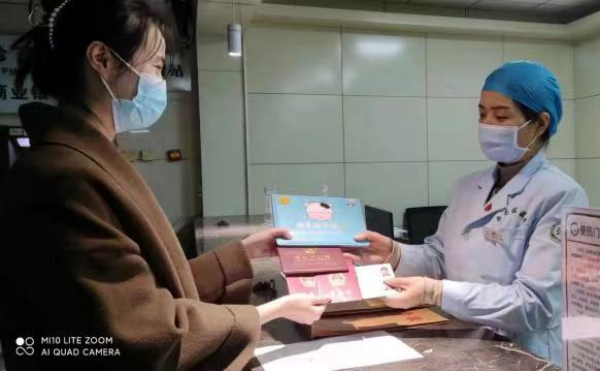 (居民张格格在示范区医院领取新生儿出生证、户口本)