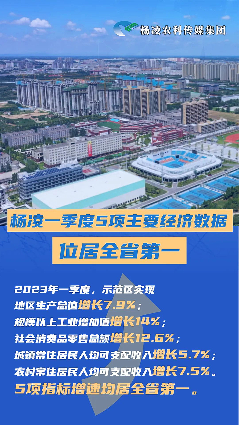全面贯彻党的二十大精神开局之年,踏着春日明快的脚步,杨凌示范区经济加速回暖,实现首季“开门红”——示范区实现生产总值36.80亿元,同比增长7.9%,增速较上年同期和全年分别加快3.1和1.7个百分点,增速居全省第一。