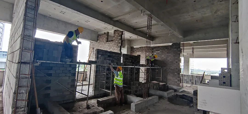 “目前,综合实验大楼1-7层主体施工已完成,正在进行二次结构施工,二层、三层二次结构施工已经基本完成,四层、五层二次结构施工已经过半。”现场负责人表示。