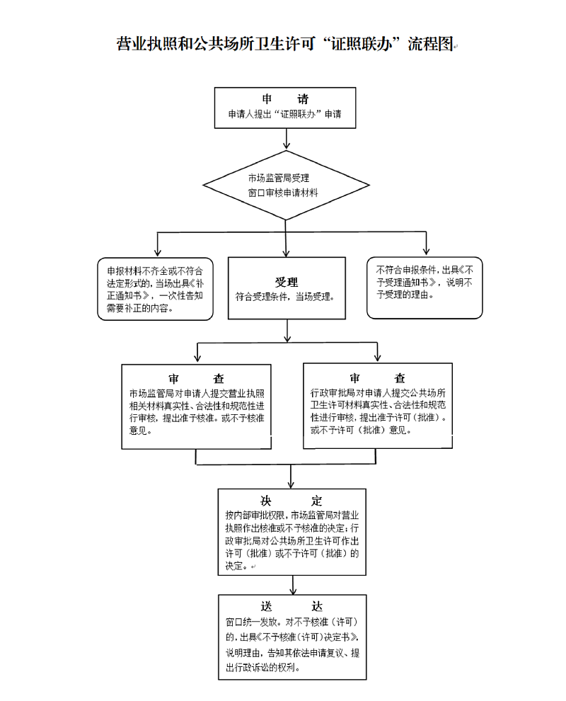 “证照联办”改革聚焦解决企业和群众办事多头跑问题,通过整合部门行政审批资源,在营业执照和公共场所卫生许可推行“一窗受理、内部流转、同步审核、统一出件”的集约化服务模式,实现同一市场主体只需到一个窗口申请,提交一套材料,即可一次性办妥营业执照和公共场所卫生许可证,最大程度减少办事环节和等待时间,降低市场主体非经营性成本,提升全流程办事体验。