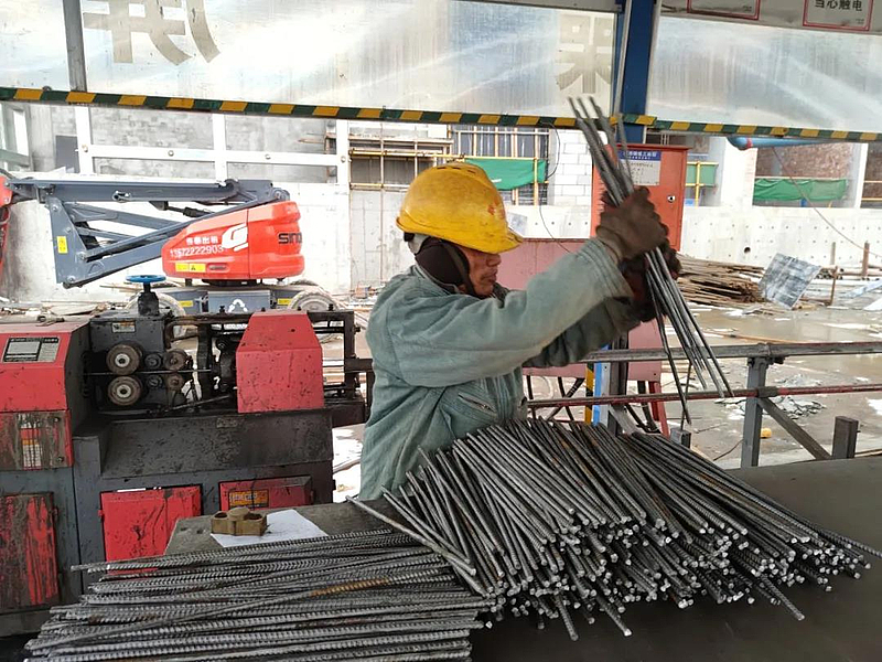 2月8日一大早,记者在杨凌综合保税区项目建设现场看到,工人们正在给屋面工程配料,一节节切割好的钢筋被加工成钢筋挂钩,整齐地摆放在料台上。