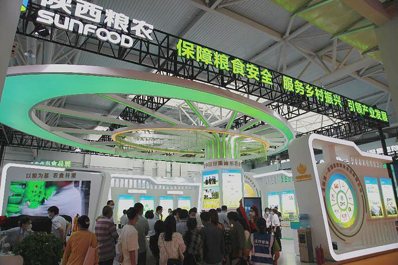 在第29届农高会D馆(农业高新技术成果展),陕西粮农集团以“保障粮食安全、服务乡村振兴、引领产业发展”为主题,携所属种业、牧业、农业、粮油加工等领域相关企业参展,重点展示了“从种子到餐桌”全产业链的新成果、新技术、新产品。