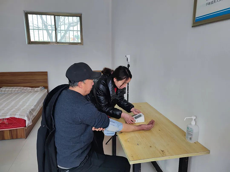 和高田德一样,高升祥老人也是高家村幸福院的一员,早上吃过饭,他便和往常一样来到休息室,让工作人员给自己量血压。
