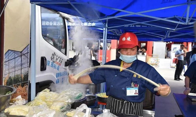 在每年一届的中国西安丝绸之路国际旅游博览会期间,杨凌美食区咥蘸水面是会展期间的一大亮点。