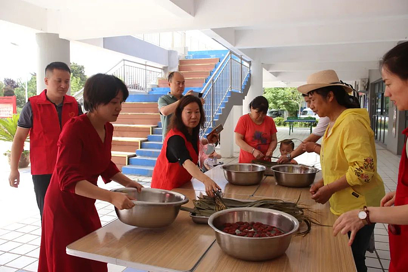 手起手落,手腕转动,不过十几秒钟,一个个比成年人手掌心略大的粽子就包好了。老人们拿着粽子,拉着党员志愿者的手说道:“今天包的粽子吃在嘴里,甜在心里,真得感谢社区对咱们的周到服务啊,以后这样的活动我每次都要参加!”