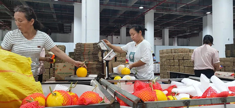 7月19日,在网营物联杨凌供应链中心陕西乐淘农业科技有限公司的厂房里,工人们正忙着处理订单,熟练地分拣、打包、装箱……一片火热景象。