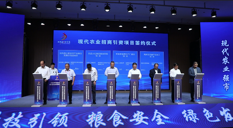 9月19日下午,科技引领宝鸡现代农业高质量发展大会在杨凌召开。大会签订了无人农场建设战略合作等农业科技市区合作项目10个。会上还签订陕西老实人供应链产业园等现代农业高质量发展招商引资项目20个,总投资38.76亿元,涵盖了良种繁育、农业园区建设、冷链物流、储藏加工以及智慧农业等全产业链。