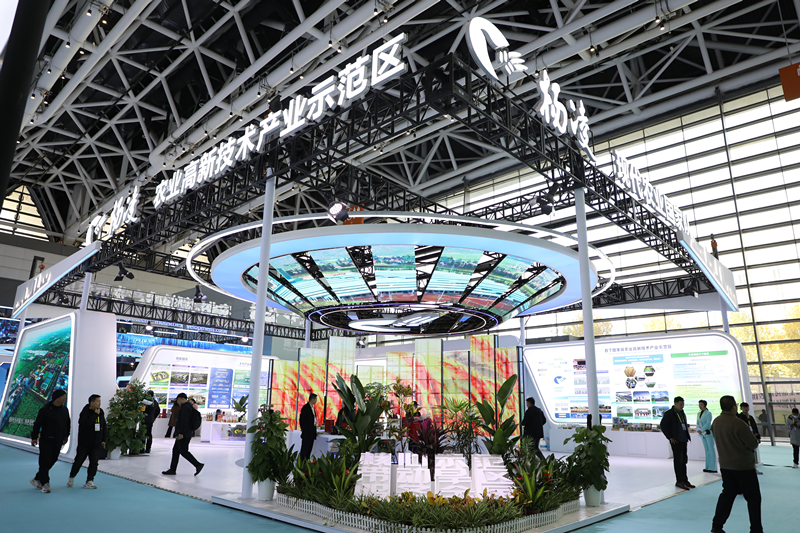杨凌示范区展。杨凌示范区展面积330平方米,以立足现代农业“国家队”、建设世界知名农科城为主题,按照“核心示范、带动旱区、服务全国”的要求,以农业科技创新、示范推广、主导产业发展、功能园区、农业对外开放、营商环境等板块为主要内容,集中展示杨凌示范区作为现代农业“国家队”带动旱区、服务全国的农业科技示范推广新成果、新成效。其中,产业发展集群板块,将系统展示现代种业、农产品加工、生物医药、现代农业服务业、涉农装备制造和新材料等方面内容。