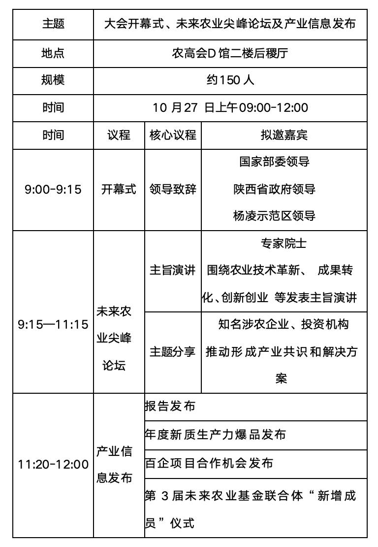 (一)大会开幕式、未来农业尖峰论坛、信息发布会