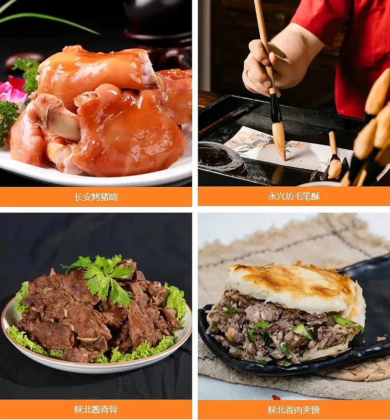 “非遗传承 秦味食尚”,农高会期间C馆对面将设置农高会非遗美食品鉴区,毛笔酥、肉夹馍、炒凉粉等陕西特色美食,绝对让您大饱口福。