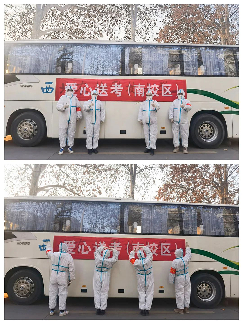 “这次爱心送考对于我们一线辅导员来说,也是为梦护航的一次‘大考’,任务艰巨而光荣。我们会贴心服务、主动担当,全力以赴克服困难,做好疫情防控战斗员、应考尽考守护员、平安研考保障员,陪伴学生为研考之路划上圆满句号。”西北农林科技大学机电学院辅导员周勤勤说。