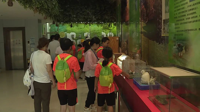 除了省内的研学团队外,不少省外的夏令营团队也来到了农科城杨凌打卡研学。来自四川射洪市“奔跑吧少年”抗挫力训练夏令营的学生们7月26日下午也走进西北农林科技大学博览园动物博物馆,漫游动物世界。