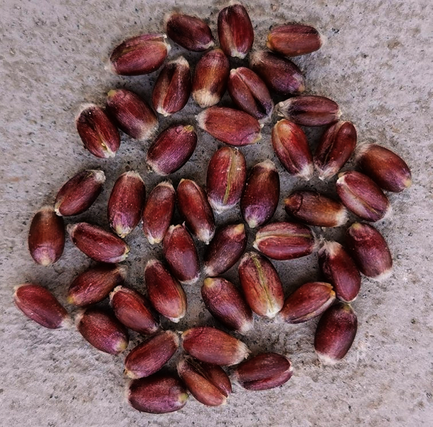 奚亚军表示,“稷麦8号”品种有五大优点:首先,是产量高,其良好的产量构成因素,保证了与生产上大面积推广种植的普通白麦品种产量相当;其次,是品质优,除具有彩色小麦富含花青素及微量元素等的突出特征特性外,“稷麦8号”蛋白质含量高,其他品质指标也与普通白麦中筋品种相当,用其面粉加工成的馒头、面条口感筋道,麦香味突出;第三,是种子商品性好,紫色籽粒色深,粒大,饱满度高且角质化;第四,是适应性广,田间综合抗性好,抗寒抗倒伏特性突出,在2022年冬季小麦冻害大面积发生时,“稷麦8号”几乎未受影响,目前也已在安徽省完成区域试验程序,即将通过审定;最后,是栽培技术简单,其田间栽培技术与普通白麦品种相同,没有特殊要求。