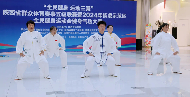 7月30日,“全民健身 运动三秦”陕西省群众体育赛事五级联赛暨2024年杨凌示范区全民健康运动会健身气功大赛在杨凌万达广场举办。