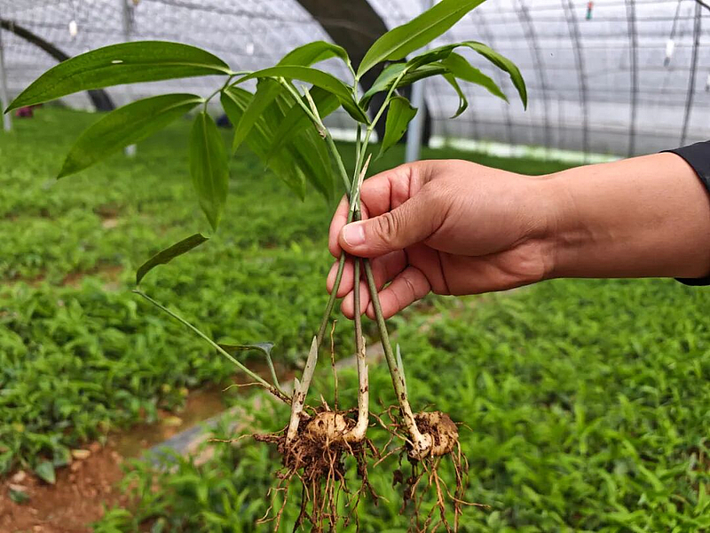 朱自兵挖出一棵长势喜人的黄精苗,自豪地向记者介绍:“一般黄精种子在自然条件下要一年才能发芽,我们通过核心技术进行人工催芽,45天就能出芽,出芽率达到90%以上,大大缩短了育苗周期。”