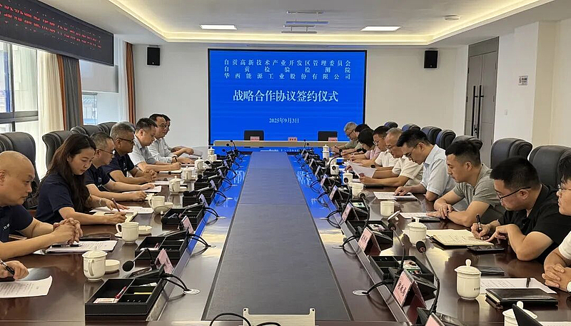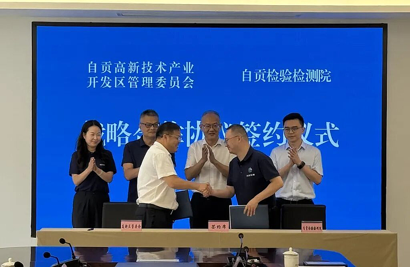 9月3日,自贡高新区管委会、华西能源工业股份有限公司分别与自贡检验检测院签署合作协议,正式启动“政检联动、企院协同”深度合作新模式。自贡高新区党工委副书记、管委会主任谢飞,自贡检验检测院院长谢建君出席仪式并致辞,华西能源工业股份有限公司总经理刘选明代表企业发言,委领导尤德阳代表自贡高新区签署协议。