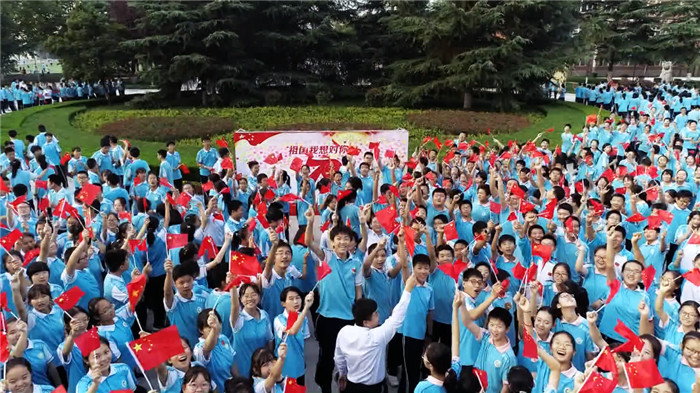 9月28日,西农附中全校3000余名师生用“快闪”形式真情演绎《我和我的祖国》,庆祝新中国成立70周年,表达对祖国的热爱与祝福。