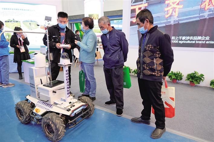 10月22日,在农高会上,西部电子商务股份有限公司参展人员展示新研发的“自走式信息采集机器人”。记者 田若楠 摄