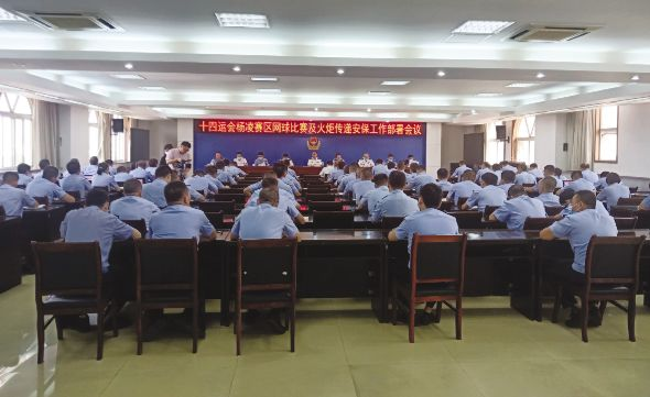 8月23日下午,十四运杨凌赛区网球比赛及火炬传递安保工作部署会议在杨凌示范区公安局召开,示范区公安局党委书记张广东同志参加会议并讲话。会议由示范区公安局党委委员、副局长马亚强同志主持。杨凌示范区应急管理局、消防救援支队相关负责人,局党委班子成员,杨陵分局、交巡警支队班子成员和局属各部门负责人参加会议。