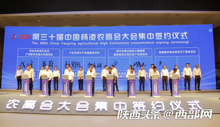 9月20日,第三十届杨凌农高会大会集中签约仪式举行。西部网·陕西头条记者获悉,此次有16组56个项目进行签约,总签约金额达232.1亿元。