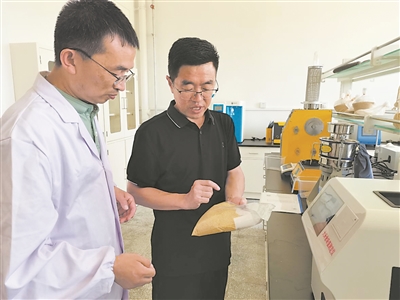 西农大农学院副教授杨璞(左)正在对小米新品种“米谷1号”各项营养成分进行检测分析。