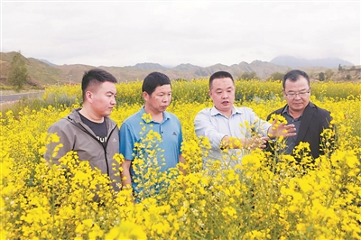 陕西省杂交油菜研究中心育种专家韦世豪(中)介绍化学诱导杀雄技术在油菜制种应用情况。