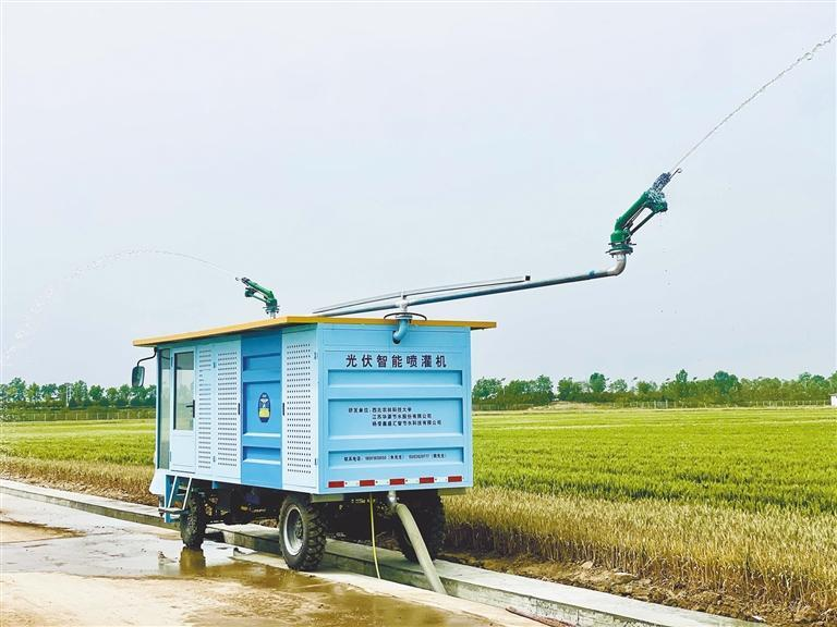 6月25日,在杨凌良科智慧农业示范基地,一台光伏智能喷灌机正精准喷灌,为作物送上“及时雨”。这项由西北农林科技大学朱德兰教授团队研发的创新成果,成为夏季作物高效管理的“科技利器”。