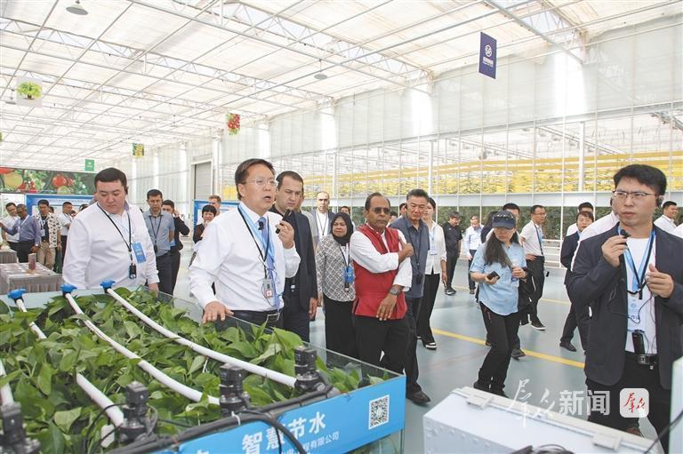 5月19日,来自上合组织国家的农业人才在杨凌智慧农业示范园参观(资料照片)。