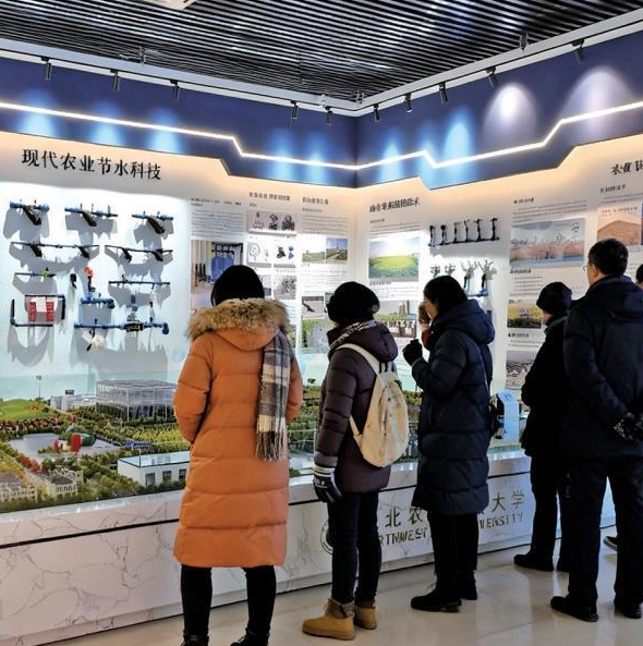 农业水利博物馆占地面积550平方米,由古代农业水利、近现代农业水利、现代节水科技、黄土高原区域治理、生活节水等5个部分构成,馆藏各类实物标本800多件。