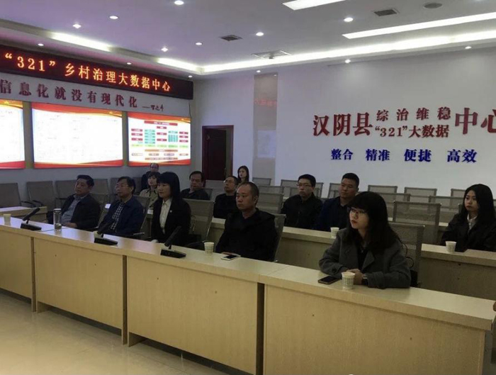评估组专家在汉阴县乡村治理大数据中心了解“321”乡村治理模式