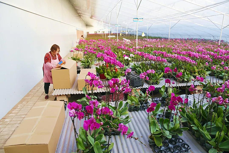 三方的合作,不仅为村集体带来了蝴蝶兰种植技术,就连销路也有了保障。说话间的功夫,甘肃平凉的客户袁菲就开车来到基地准备拉货。“我感觉咱们这边的蝴蝶兰花大、花节长,花的颜色更艳一些,花期也长,在当地很受市场欢迎,今年到目前为止,我已经来这里20多次了,每次都要来拉200株左右的蝴蝶兰。”