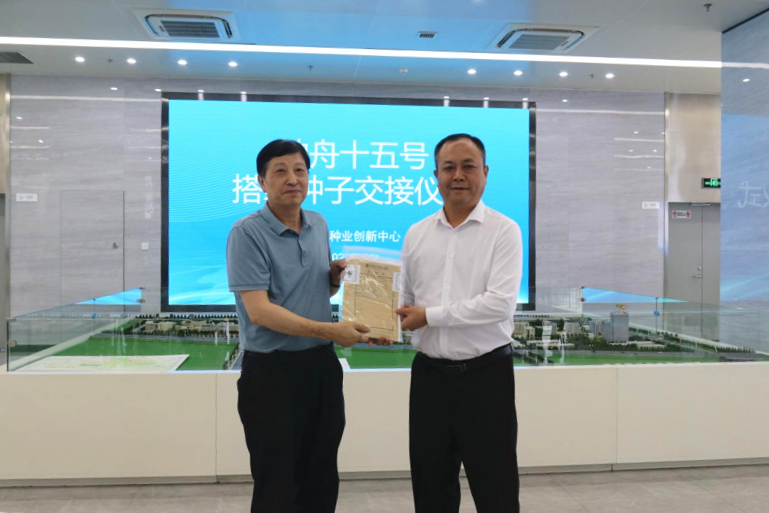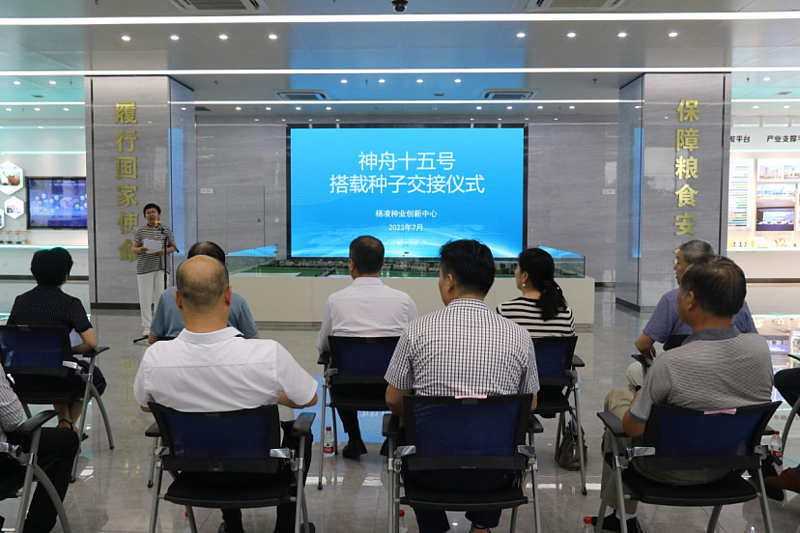 7月28日下午,神舟十五号搭载种子交接仪式在杨凌国际种业大厦举行。杨凌示范区党工委委员、管委会副主任马江涛出席活动并为供种单位代表交付种子,颁发公证证书。