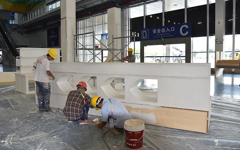 雷新峰告诉记者:“从9月10号开始,特装施工企业进场,C馆今年总共26家特装企业,目前进场15家,还没有进场的参展企业正在加速办理进场手续。我们倒排工期,全部按照时间节点推进工作,确保17号下午所有施工完成,18号上午摆放展品。”