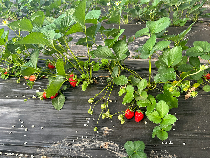记者在大棚中看到,棚内的墙体呈波浪形,每个波浪间相隔20厘米左右,里面填充蓄热材料,外壁装有植物补光灯。据了解,这种墙体是采用光的全波段吸收储热,能够保障大棚白天夜间温度恒定,为草莓生长创造了舒适的环境,一系列“黑科技”的应用,也让研究所的草莓凭借独特的口感,在市场上闯出了一片属于自己的天地。“这些草莓是今年8月份种的,土壤肥沃,光照充足,今年种植的草莓口感非常好,在11月中旬就已经开始上市售卖,现在所有的草莓已经全部被预定。”生产负责人田艳介绍。
