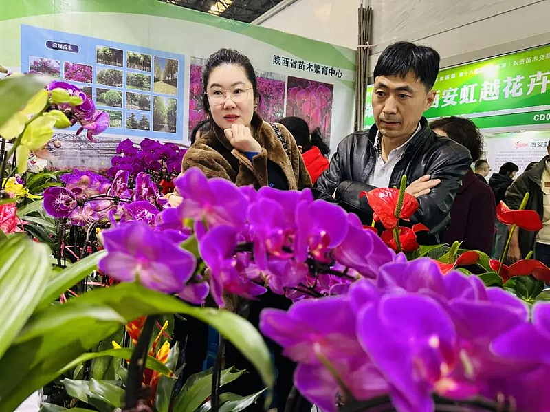娇艳的蝴蝶兰,引得参会群众驻足观赏,他们是在看花也是在看未来。