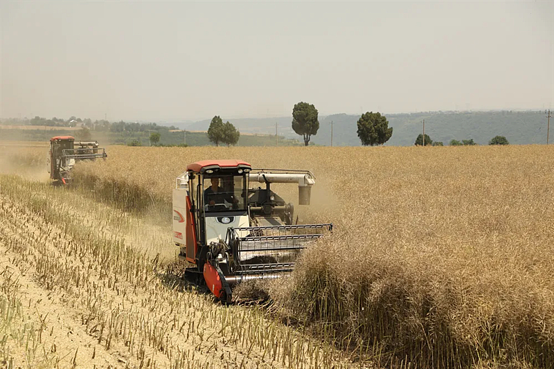 油菜产业能在政策的春天里绽放金黄,也要在市场的夏天里收获黄金。近日,宝鸡市岐山县枣林镇范家塬村的800亩油菜,迎来了丰收。收割机来回在田间穿梭,一株株油菜被卷起送入收割台,很快完成收割、脱粒、分离、粉碎等工序。