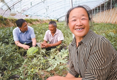 听说李建明教授又来了,示范站周边试点的西瓜种植户仲桂英(前)赶忙邀请李教授团队到大棚里指导高品质西瓜的全有机营养栽培技术。
