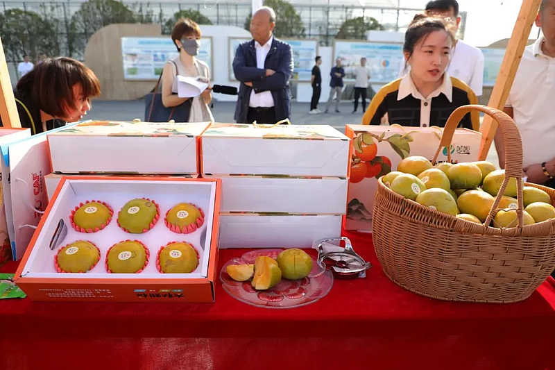 皮薄肉厚的火龙果、个大饱满的太秋甜柿、香甜软糯的红薯……绿色优质的农副产品以及各式非遗工艺品琳琅满目,描绘出乡村振兴的美好景象。