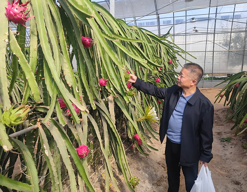 望着一颗颗色泽鲜艳、果型饱满的火龙果,苗红斌赞不绝口:“这里的火龙果果实大、品质好,经济效益也高。今天参观完,我就想看能不能把这些品种、技术引进到我们那里,引导种植大户也种植一些,通过发展火龙果产业来提高大家的收入。”