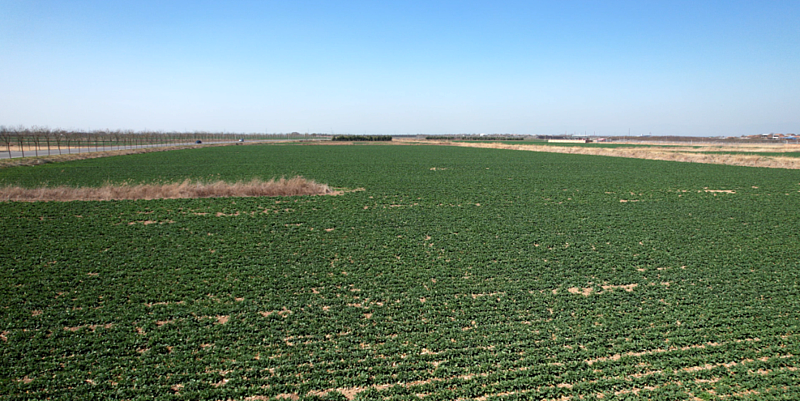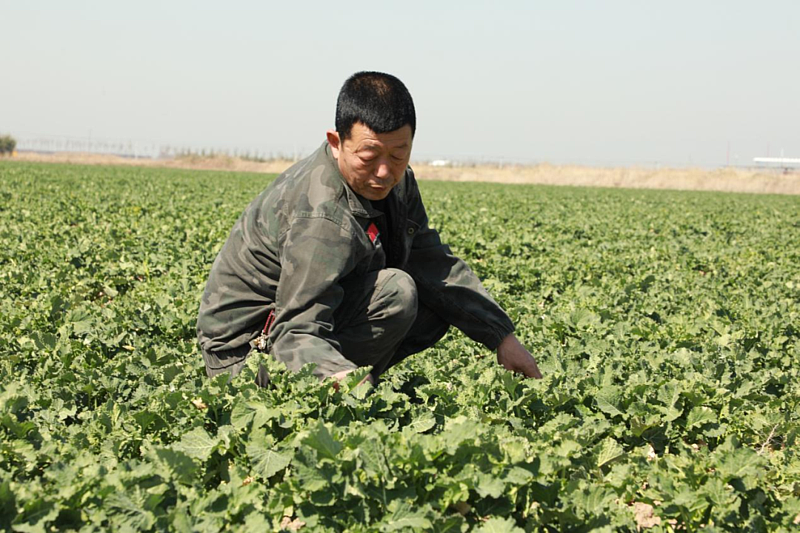 据了解,渭南卤阳湖地区的盐碱地共有15万亩,其盐碱度为2.0‰-4.0‰,平均PH值为8.0-9.0,小麦、玉米等作物均不能在该地区正常生长。附近村民高战民去年承包了520亩盐碱地,承包前这片地是荒地,拿到土地后他犯了难,种什么呢?“听人说油菜抗盐碱,我就抱着试一试的态度,联系到陕西荣华公司,全部种植了荣华油369这一品种,没想到,不仅能安全越冬,现在还长势这么好。”高战民说。