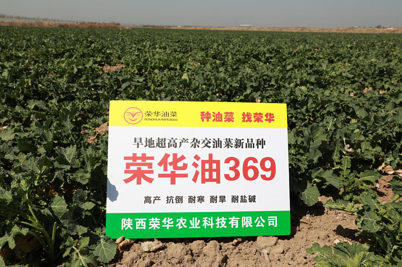 目前,荣华油369已在陕西省蒲城和富平盐碱地、山西永济黄河滩盐碱地、山东东营盐碱地以及江苏大丰沿海滩涂盐碱地进行了大面积示范,效果显著,引起众多种植户的关注。除此之外,目前该品种已经完成制种,今年在盐碱地集中示范900多亩,种子已进入销售推广应用阶段。