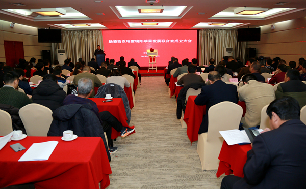 12月28日,“杨凌西农瑞雪瑞阳苹果发展联合会”成立大会在杨凌召开,陕西省政协副秘书长张宏,杨凌示范区管委会副主任袁鸿马,西北农林科技大学钱永华副校长,国家苹果产业体系首席专家、西北农林科技大学霍学喜教授为“杨凌西农瑞雪瑞阳苹果发展联合会”揭牌。