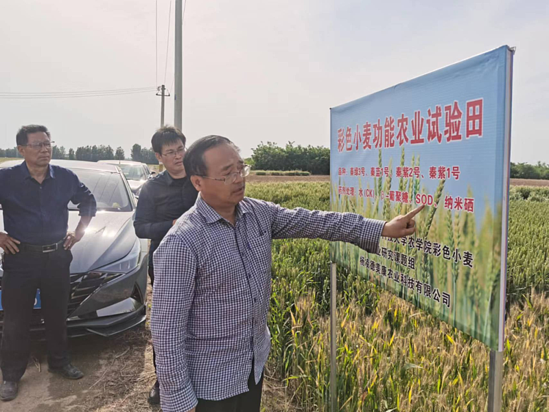 5月17日,由西北农林科技大学农学院组织的“彩色小麦功能农业研究课题组”试验田观摩会在杨凌示范区曹新庄试验农场举行。在一块彩色小麦试验田旁,西北农林科技大学“彩色小麦功能农业研究课题组”研究员何一哲介绍说。