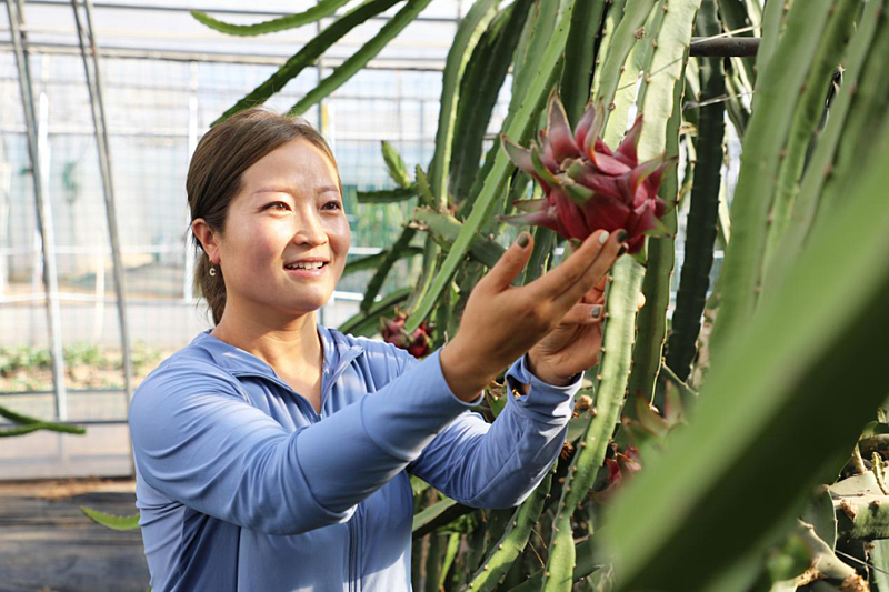 “现在基地不只种植火龙果,我们还扩展出了火龙果种苗繁育、深加工和研学旅游等衍生产业。”王艳说,在2021年,火龙果的产值达到了400多万元,这都得益于多元化的产业发展和线上线下双渠道的融合,打开了产业发展新赛道。