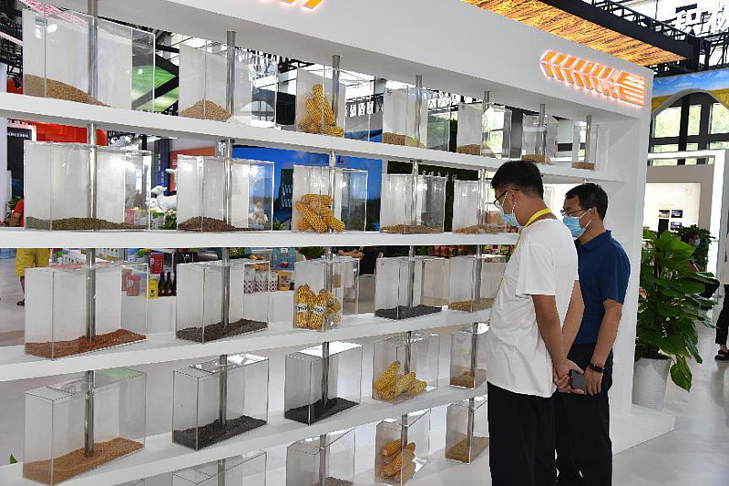 在第六届丝博会杨凌展团综合馆中央,一面用透明盒子组成的“种子墙”格外抢眼。