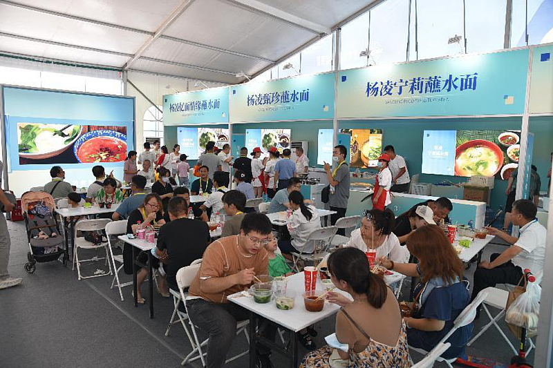 杨凌蘸水面、旗花面、甑糕等特色美食在丝博会上就能品尝到。8月14日,在第六届丝博会开幕式当天,在特色美食展区,“杨凌味道”让参会客商口齿留香,赞叹不已。
