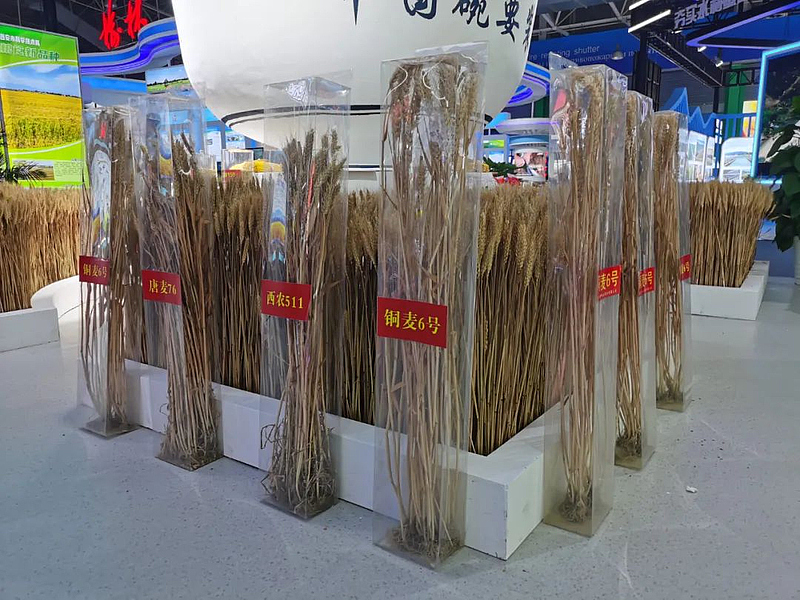 “我们这个小麦抗旱、耐寒、抗倒伏,产量还高,种它绝对没问题。”9月16日下午,第29届中国杨凌农高会开幕第2天,B馆(农业科技示范推广应用展)铜川展区前,一个装满小麦种子、高约2米的大碗造型吸引了众多参展群众的目光。而作为铜川展区的参展企业,陕西大唐种业股份有限公司(以下简称“大唐种业”)的工作人员邹琳鹏正忙着给周围群众介绍他们的主推品种——铜麦6号。