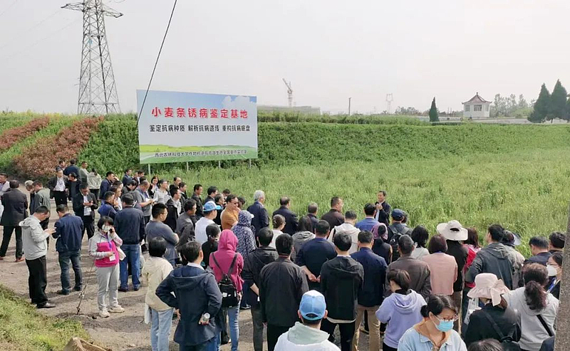 11日上午,与会代表在西北农林科技大学东南窑科研基地、北校区西区小麦品种试验田和小麦条锈病鉴定基地、官村小麦试验示范基地组织开展了小麦抗条锈病、赤霉病、白粉病等病害的种质资源、品种及抗性鉴定技术田间观摩活动。