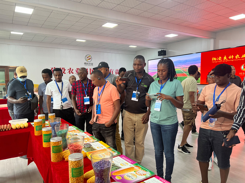 在公司展厅里铁杆玉米新品种,引起了尼日利亚的学员桑代的浓厚兴趣。